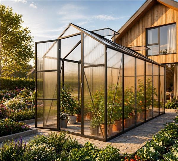 Vďaka odolnému hliníkovému rámu a výplni z UV stabilizovaného polykarbonátu poskytuje skleník spoľahlivú ochranu pred nepriaznivým počasím a zároveň udržiava optimálnu teplotu a dostatok svetla pre zdravý rast rastlín.